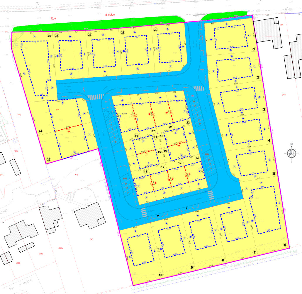 Les largeurs de façade ainsi que les superficies des parcelles sont approximatives et ne seront définitives qu'après le calcul du parcellaire établi par notre géomètre expert.